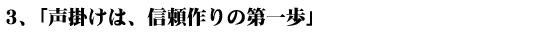 ん。お客様からのボールを待つのではなく、こちらからボールを投げていくよう心がけましょう!